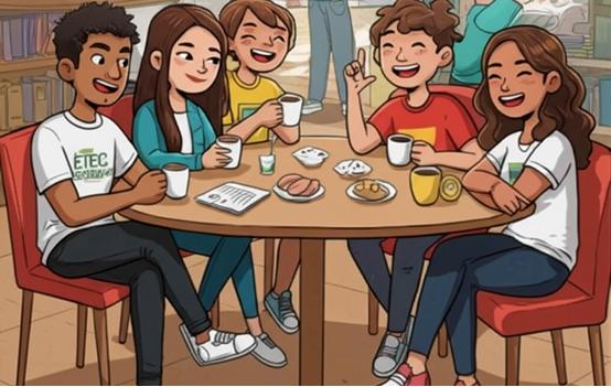 O Café + Prosa acontece toda segunda terça-feira do mês, a partir das 15h, na biblioteca da escola, e é um espaço